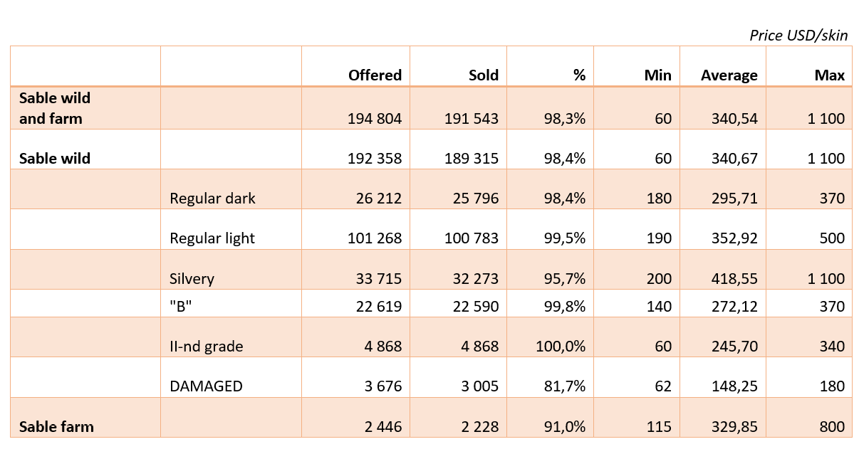 Top Lot of wild sable from the March fur auction was bought by broker Steven Holden for the company FURNARI, Russia at 4800 USD per skin.